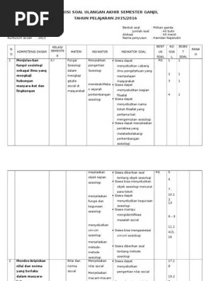 Contoh soal us (usbn) sosiologi sma/ma kurikulum 2013 tahun 2021 tahun. Nilai, norma, sosialisasi, penyimpangan dan pengendalian sosial, struktur sosial, diferensiasi sosial, stratifikasi . Penulisan/penyusunan laporan penelitian sosial bagi peserta didik berfungsi untuk. Kisi kisi penulisan soal usbn jenis sekolah sma ma mata . Mendapatkan data tentang kehidupan sosial b.